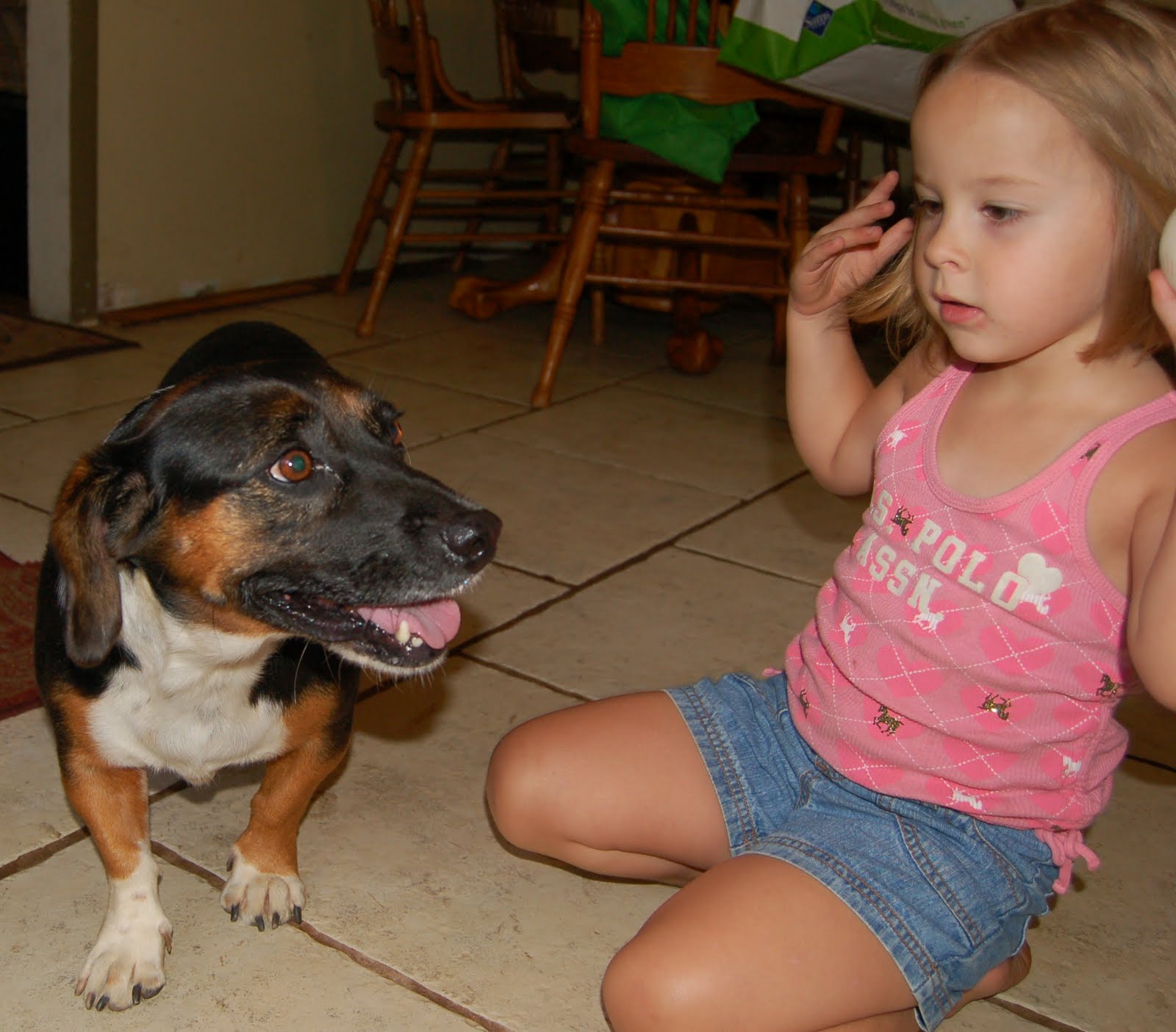 We have been home with Trixie for about 2 1/2 hours and so far so good! The kids have been real attentive to her making sure she has plenty of water and food. We have taken Trixie around the yard for a visit and the kids have had a lot of fun playing with her.
